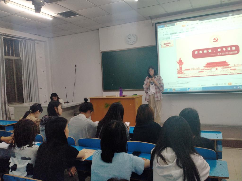 为引导广大青年深入学习贯彻习近平新时代中国特色社会主义思想和党的十九大精神,扎实推进“学党史、强信念、跟党走”党史学习教育,美术设计系于2021年5月19日19:40在3号教学楼南406多媒体教室开展“青春向党,奋斗强国”主题团课活动,美术设计系学生积极参加。