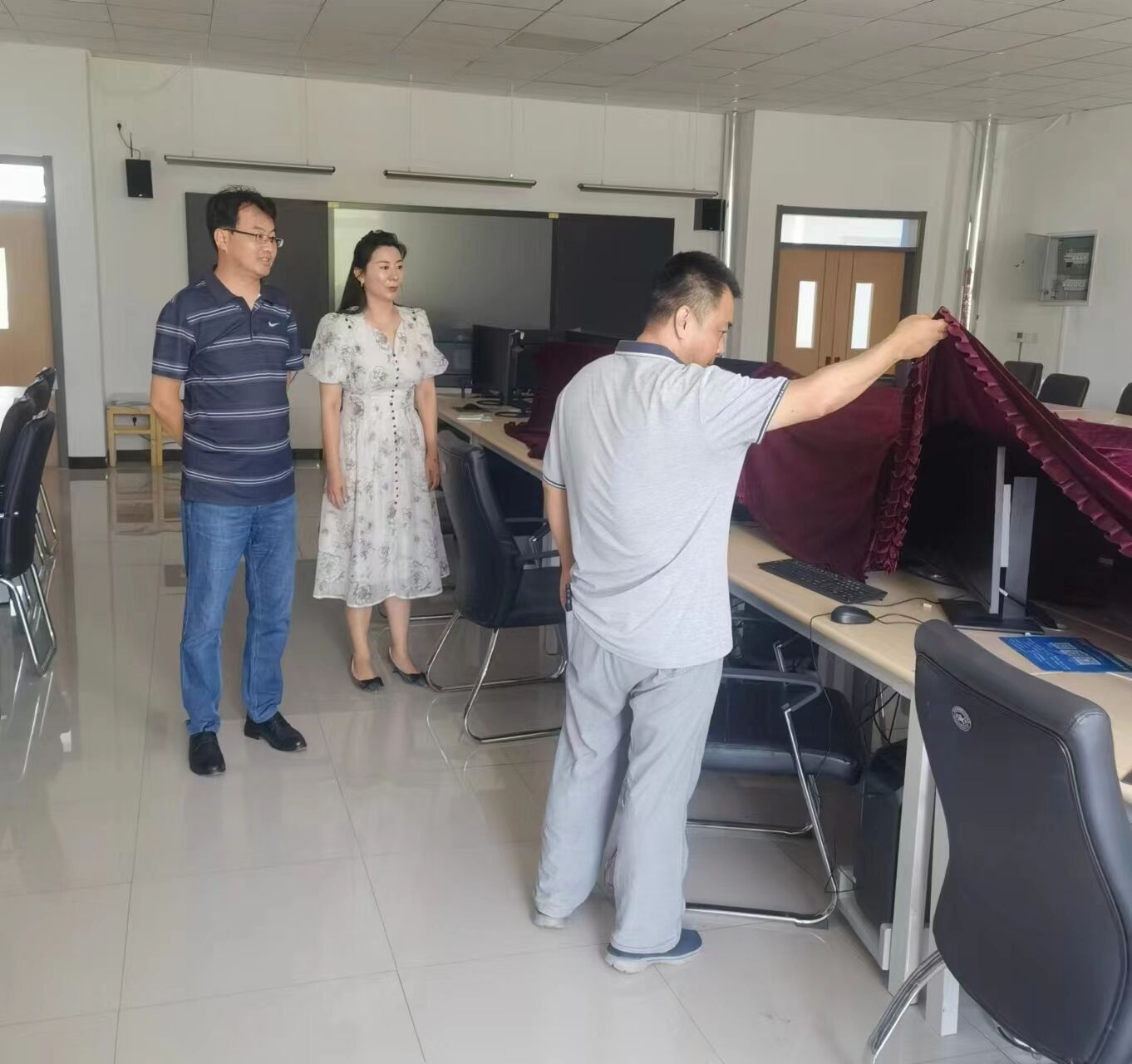 为做好我系实验室安全管理工作,排查存在的隐患问题,维护实训设备和教学实验工作的有序进行,8月25日,美术设计系主任董安治、副主任张阳、实验室管理员教师刘涛对我系所属实验室进行了全面的安全检查。