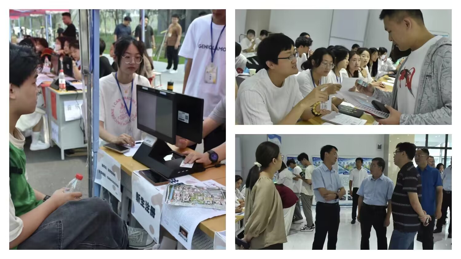 美术设计系领导高度重视迎新工作,系党总支书记成洁萍、系主任董安治在迎新现场指导工作,系团总支副书记刘琰、辅导员赵云哲、杨千、申东利、田亚齐带领学生志愿者团队迎接新生,在做好审核的基础上,和学生进行现场交流。