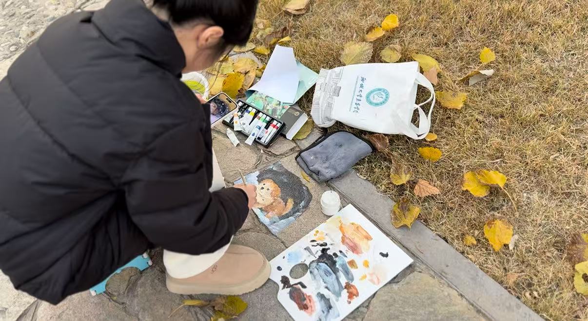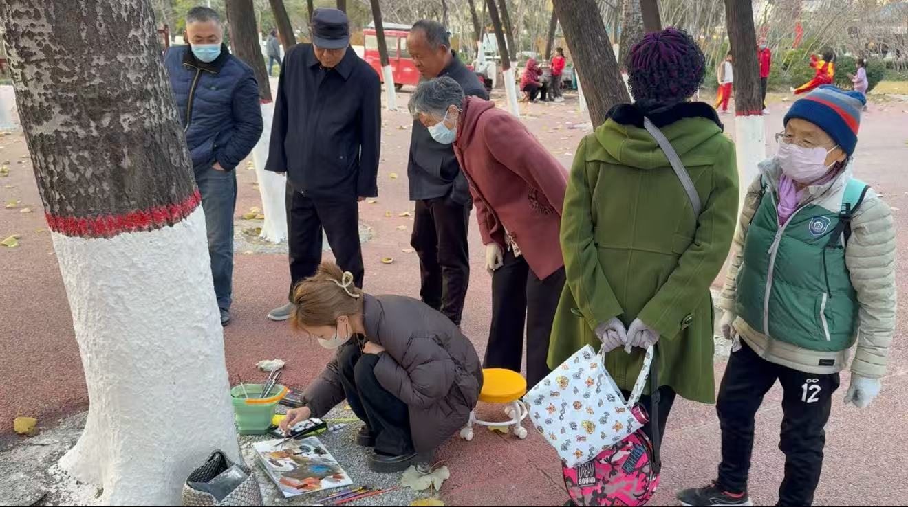活动现场,学生们分工协作,充分发挥艺术创意,运用画笔为公园街角增添色彩。他们巧妙利用现场物体结构与地面空间布局,将原本单调的路面与石景,打造成一道亮丽的城市风景线。彩绘作品不仅美化了环境,更营造出富有创意的互动视觉效果,使图案与周围环境相得益彰,成为传递城市温度的“视觉名片”。现场吸引了众多市民驻足观看,不少市民对学子们的创意与才华表示赞赏,搭建起了艺术与公众情感交流的桥梁。活动尾声,学生们围绕创作过程展开交流,分享心得体会,现场气氛热烈。