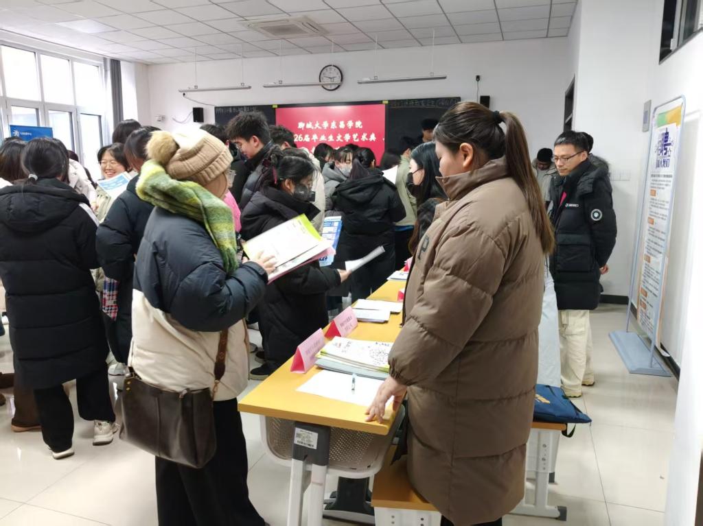 12月11日,聊城大学东昌学院文学艺术类专场招聘会在知行楼B109教室成功举办。美术设计系积极组织2026届本、专科毕业生参加,系毕业班辅导员到场与用人单位展开深入沟通交流。