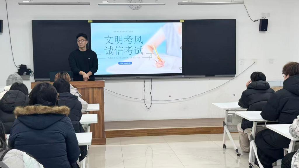 班会紧扣“诚信应考杜绝舞弊”主题有序推进。各班级辅导员立足《学生手册》相关管理规定,向学生详细阐释考试纪律要求,明确考试违纪与作弊行为的认定标准及相应处理办法,引导学生树立诚信意识,坚守道德底线,以真实学识与能力迎接考试。同时,辅导员结合典型警示案例,深入剖析作弊行为对个人学业发展、学籍档案、职业规划造成的长远负面影响。各辅导员还为学生提供针对性复习建议,指导学生结合课程特性制定科学备考计划,合理分配时间,以积极饱满的状态迎战考试。与会学生认真聆听,纷纷表示将自觉遵守考场纪律,恪守学术诚信,以实际行动考出真实水平、检验学习成效。