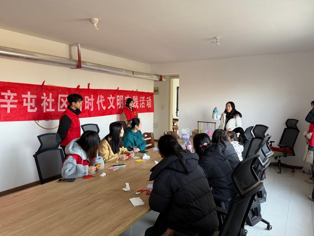 3月15日,美术设计系学生志愿者在左明老师带领下走进辛屯社区,开展“非遗传承,妙手生花”剪纸实践活动。左明以融合传统花鸟纹样与现代审美的作品为例,细致讲解剪纸艺术的历史与魅力,并现场示范折纸、握剪刀的姿势、轮廓勾勒等技巧。志愿者们化身“非遗小导师”,手把手指导居民动手创作。居民们在红纸翻飞中完成一幅幅吉祥作品。活动既让非遗文化走进寻常百姓家,也让青年学子在实践中锤炼专业技能与服务意识,为校社文化共建搭建了桥梁。