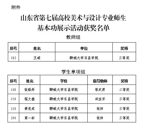 近日,由山东省教育厅主办、山东工艺美术学院承办的山东省第七届高校美术与设计专业师生基本功展示大赛结果揭晓。美术设计系师生荣获教师组三等奖1项,学生组二等奖1项、三等奖3项,展现出良好的综合素质、专业水平和创新实践能力。