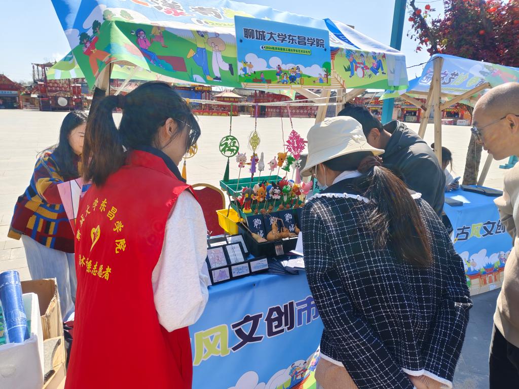 为深化美育实践教学,弘扬中华优秀传统文化,提升学生创新创业能力,推动传统文化与现代设计的创造性融合,4月4日至6日,美术设计系组织师生前往临清宛园参加第三届大学生艺术文化节,围绕“花漾青春 创艺宛园”主题,精心打造集展示、体验、互动于一体的“文创展示区”与“非遗体验区”。